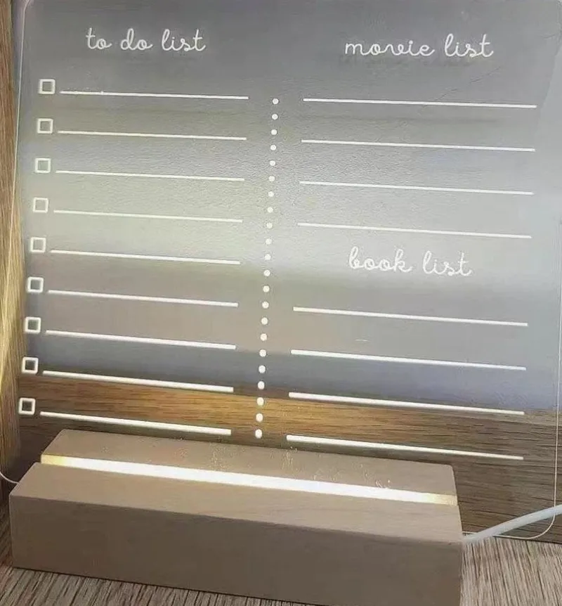 – Elegant modern design: Denna torrraderingstavla har en modern design, som kombinerar en akrylskiva med en träram och LED-nattlampa, det är det perfekta valet för din bordsdekoration. En stor skillnad från tråkiga anslagstavlor. Den tydliga och eleganta exteriören tillför lyx och textur, och denna anteckningstavla är också en speciell present.