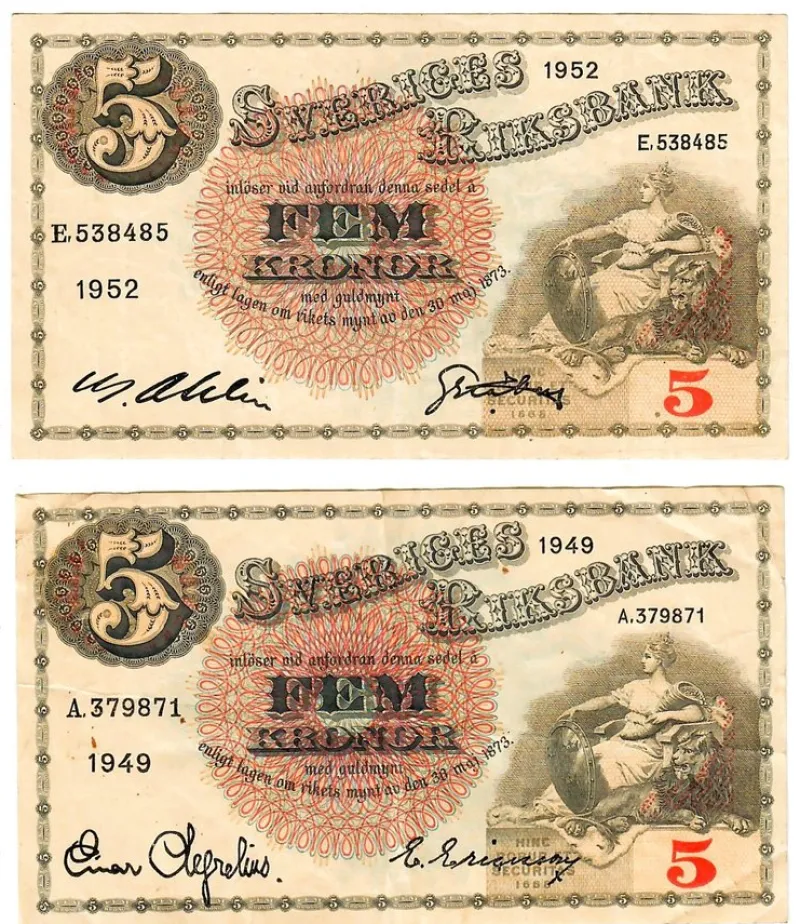 Tradera 2st Sedlar 5kronor^ Sedlar