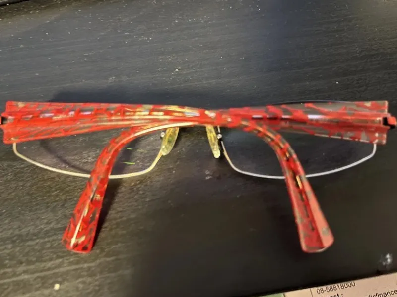 Alain Mikli glasögon, modell AO695 76. Handgjorda i Frankrike. Unik design med röda bågar. Mer information finns på www.mikli.com.