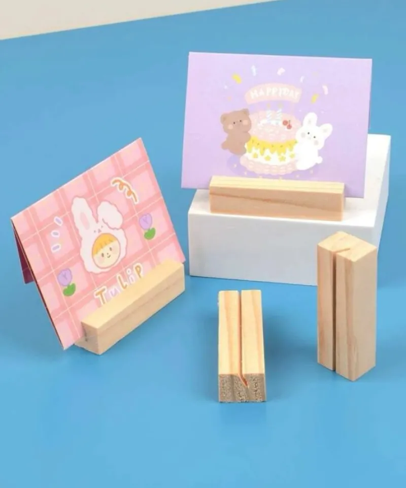 Tvåpack med visitkortshållare i trä.