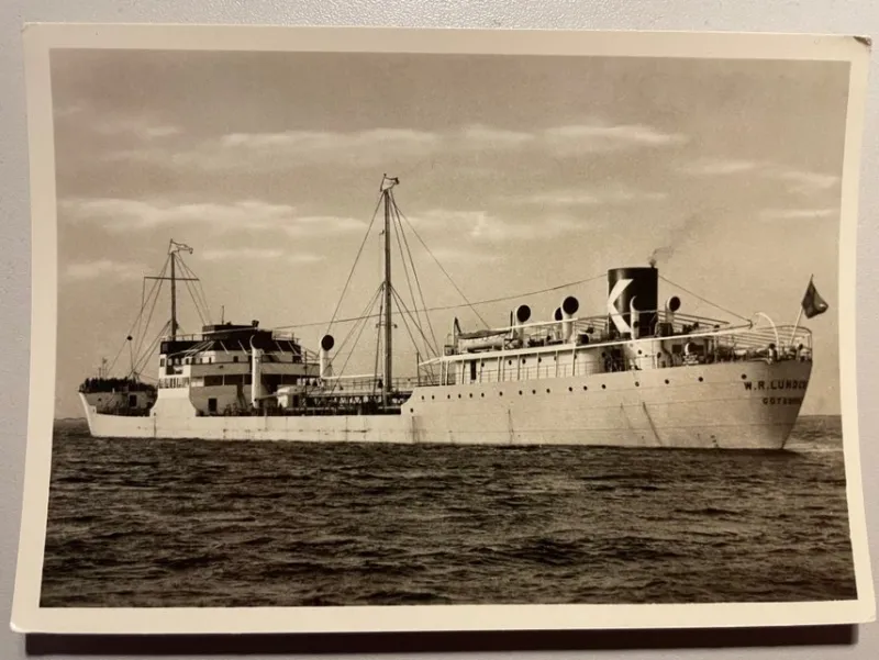 Vykort av M/T "W. R. Lundgren", byggt 1937. Fartyget tillhörde Rederiaktiebolaget Tankoil i Göteborg, Sverige. Korten visar fartyget till sjöss.
