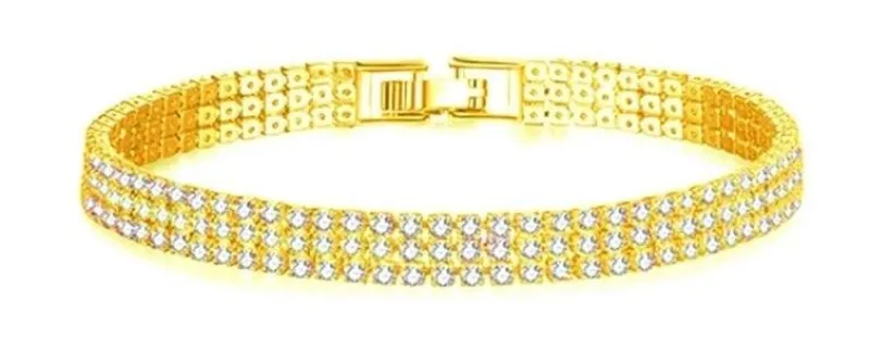 Ett vackert och glittrande strass armband, 3-radigt fyllt med vita rhinestones.
