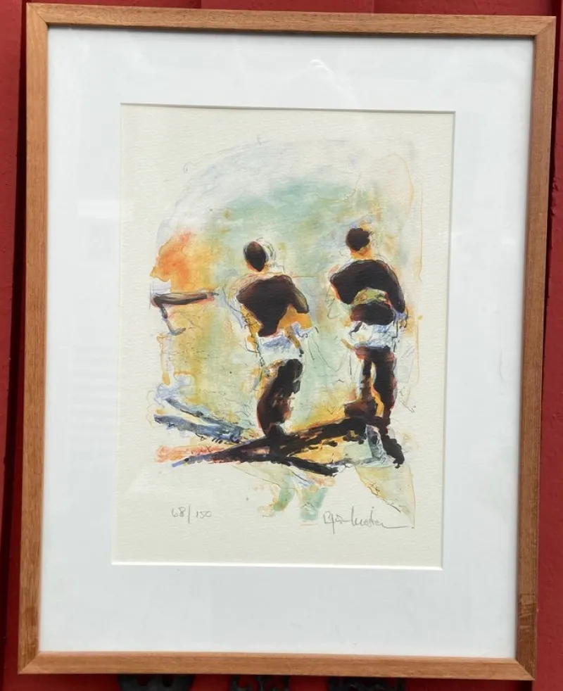 Storleken innanför passepartouten är ca 21,5 x 29 cm och med ram är ca 33 x 42,5 cm,