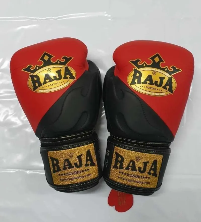 RAJA Red , Black Color Competition Glove Authentic Leather 10oz