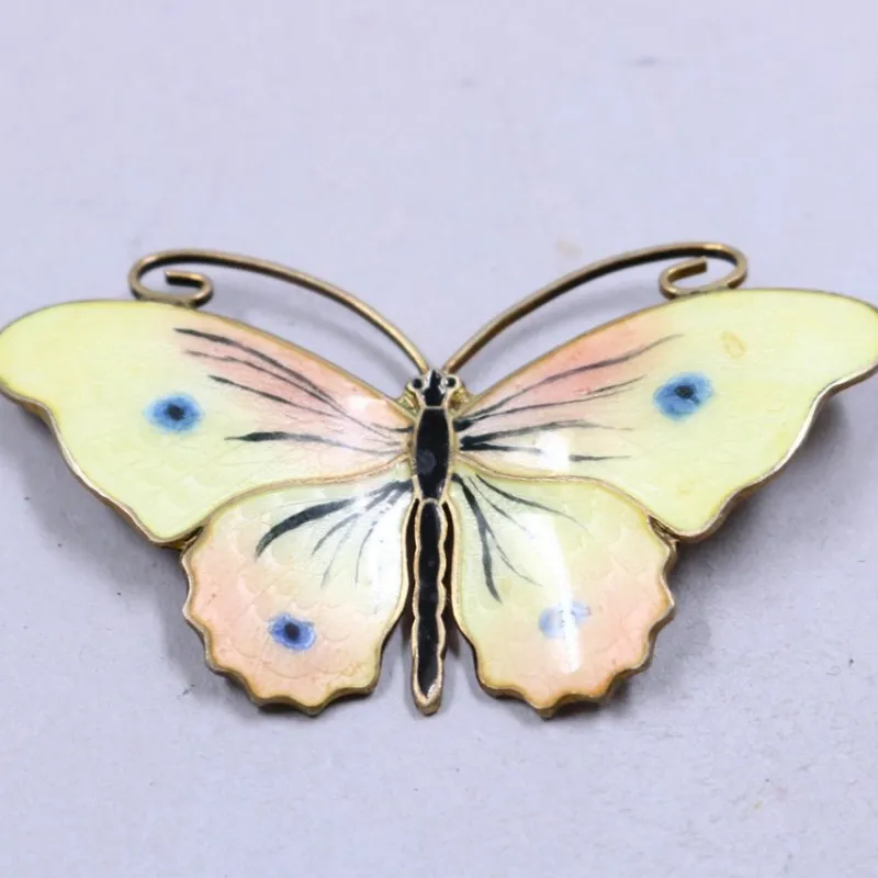 Tradera Broscher<Brosch, Fjäril, OLAV FRITJOF HJORTDAHL, Norge, Sterling 925 & Emalj, 1930-tal