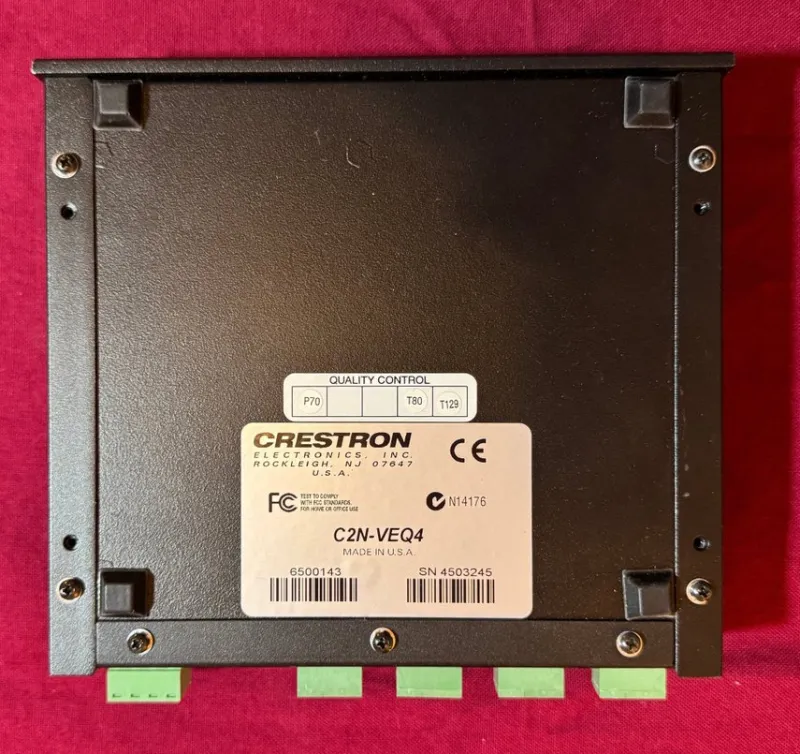 Crestron C2N-VEQ4 Volume Equalizer Control. Enheten är utrustad med fyra kanaler för volym- och equalizerstyrning. Modellnummer: C2N-VEQ4.