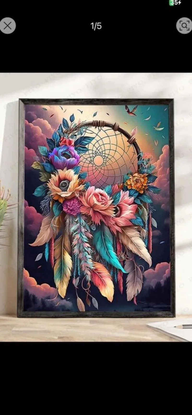 Diamantmålning med motiv av en drömfångare. Storlek 30x40cm.