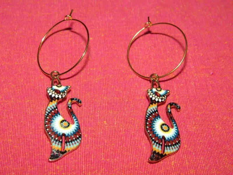 Tradera Egendesignade Smycken<Örhängen med katt/katter av emalj/rostfritt stål.