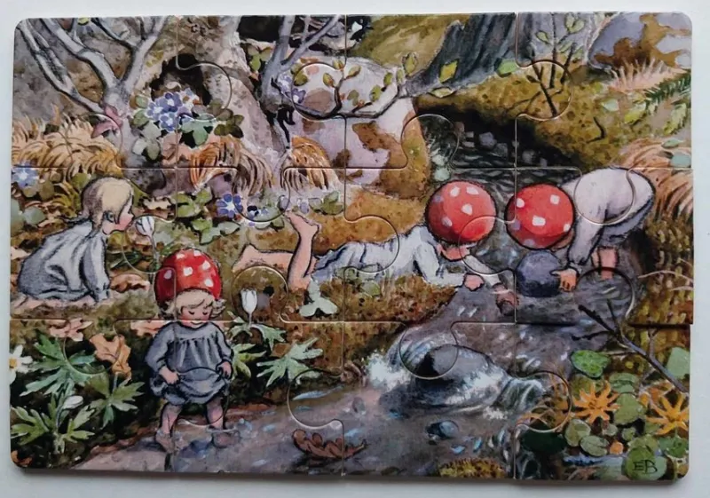 Underbara pussel med Elsa Beskow motiv i trä.