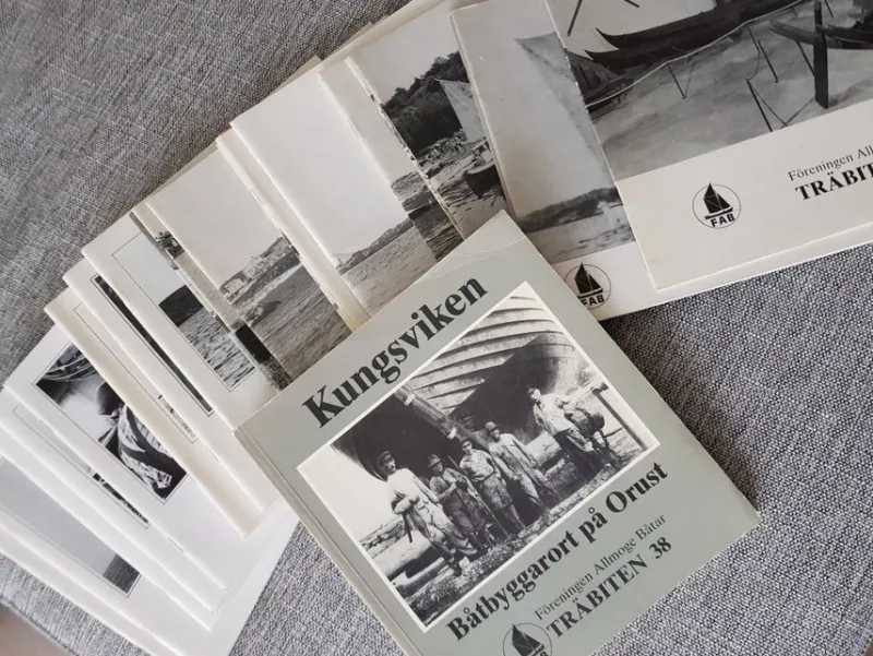 Samling tidskrifter från Föreningen Allmoge Båtar, Träbiten. Bilder och text om båtar och båtbyggeri från förr. Inkluderar bland annat information om olika båttyper och deras historia.