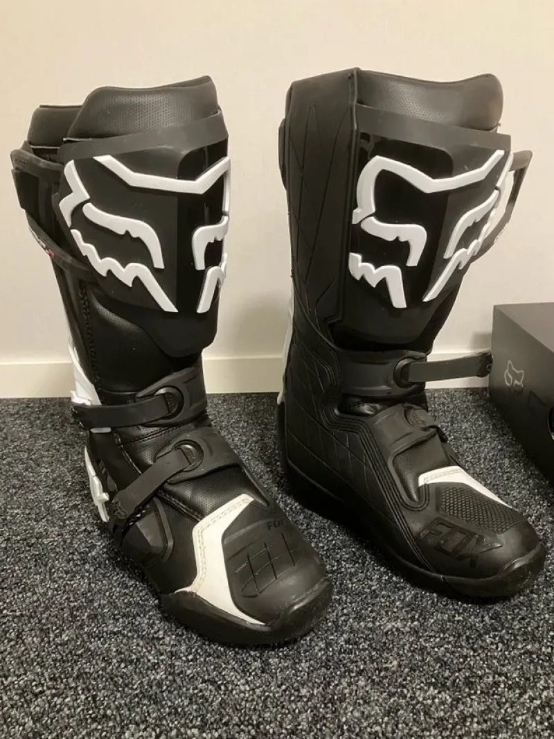 Fox Comp R motocrosstövlar, storlek 9 (se storlekstabell på bild). Passar mig som har st.42. Endast provkörda, som nya.
