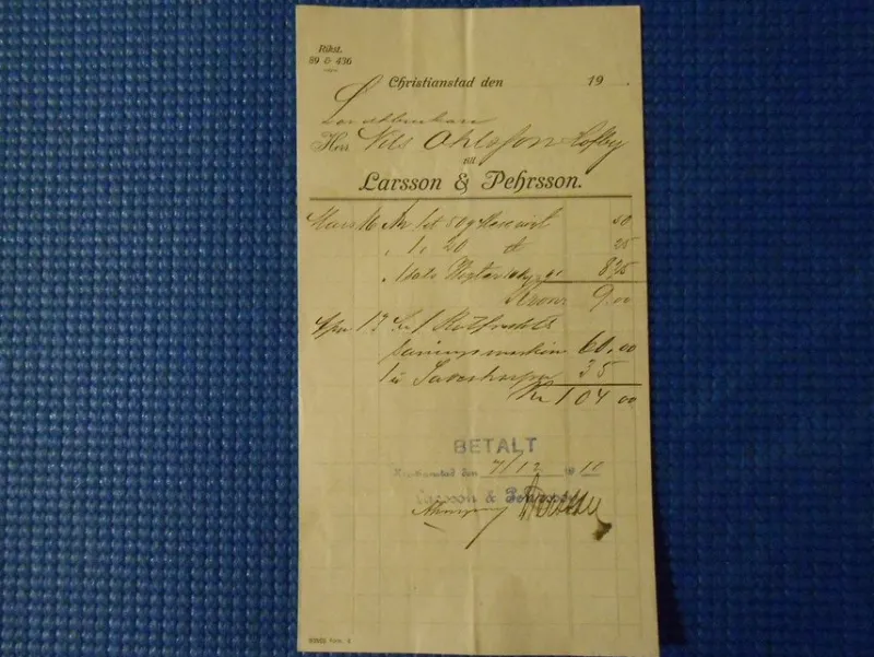 Tradera Fraktsedlar & Fakturor<Kvitto Larsson & Pehrsson Christianstad 1910