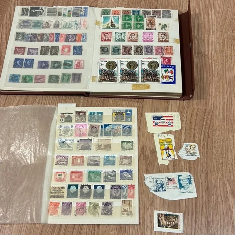 Frimärkssamling med utländska stämplade frimärken.