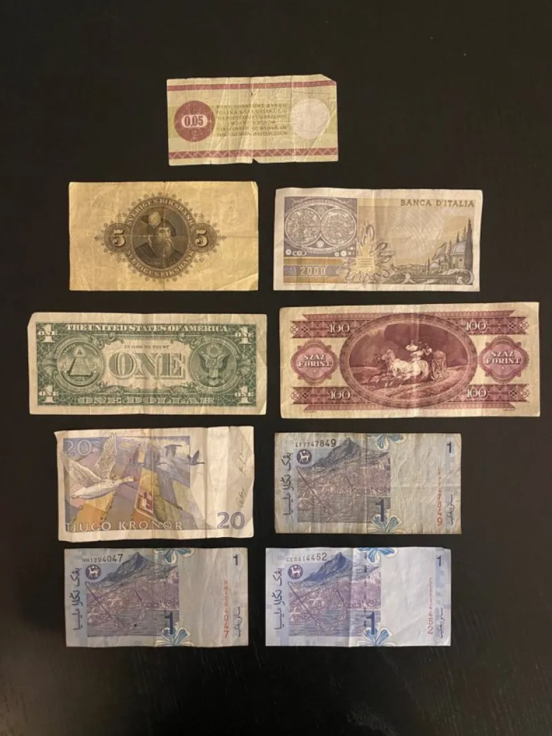 En samling gamla sedlar.