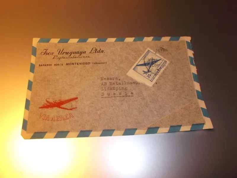 Tradera Gammalt brevomslag Flygpost från Uruguaya till Sverige Lidköping^ Sydamerika & Karibien