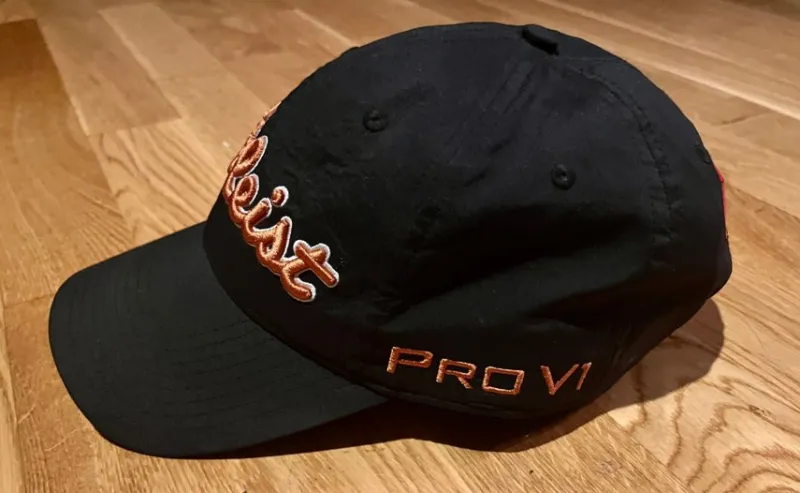 Snygg och bekväm Titleist keps i svart med orange/kopparfärgad text. Kepsens baksida har en vit rektangulär lapp med Titleist-logotypen. Inuti kepsen finns en mesh-panel för ventilation och flera Titleist-logotyper. Perfekt för golfrundan eller vardagsbruk.