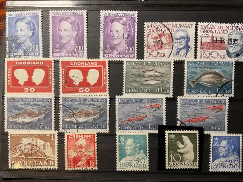 Fina Grönländska frimärken, både stämplade och postfriska (en med lite fläck)