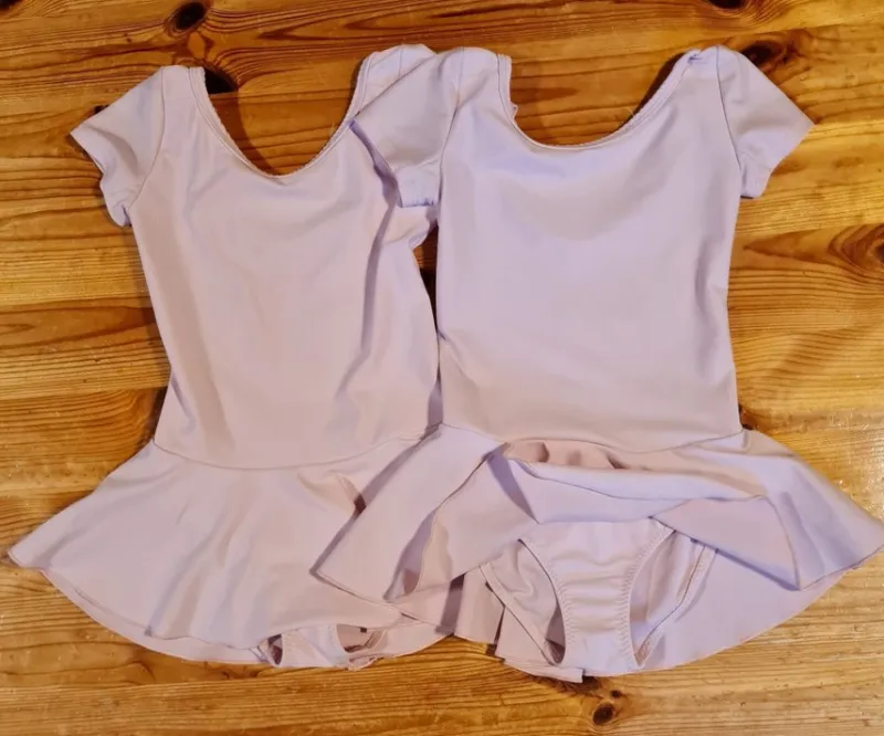 Tradera Gymnastik<Två stycken gammelrosa balettdräkt/gymnastikdräkt stl. 98