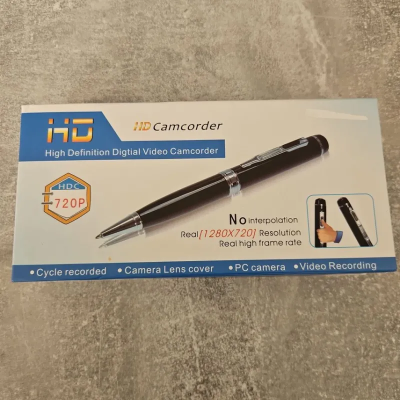 Säljer en HD-spionkamera i pennform. Kameran spelar in video med en upplösning på 1280×720 pixlar. Den har funktioner som cyklisk inspelning och en linskappa. Medföljer gör ett Micro SD-kort och adapter samt en USB-kabel för dataöverföring.
