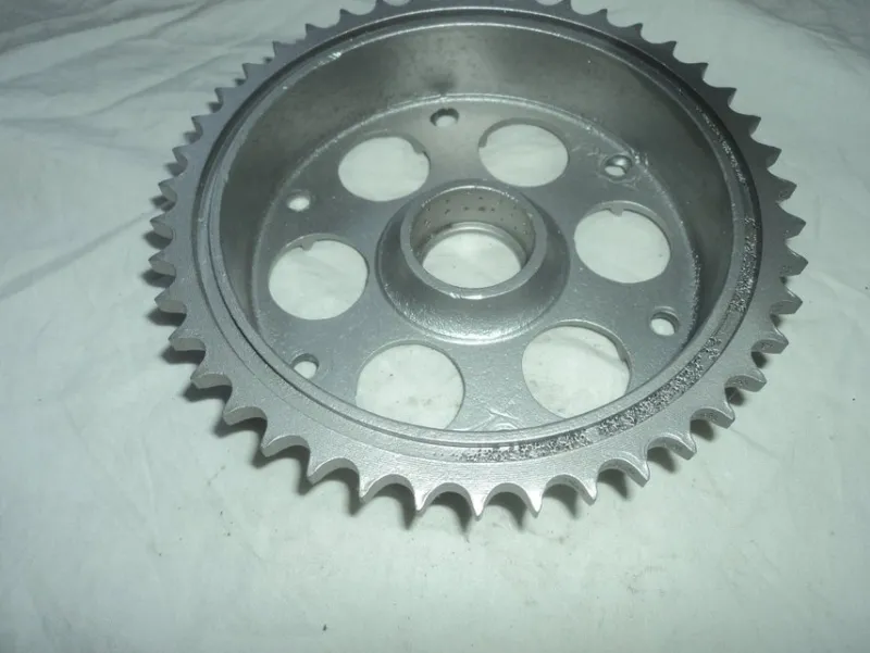 Ett bakdrev som suttit på en 60 tals cross. Det har varit ett större drev monterat utanpå detta, så förmodligen har aldrig någon kedja varit i kontakt med kuggarna. Skicket? kolla bilderna.