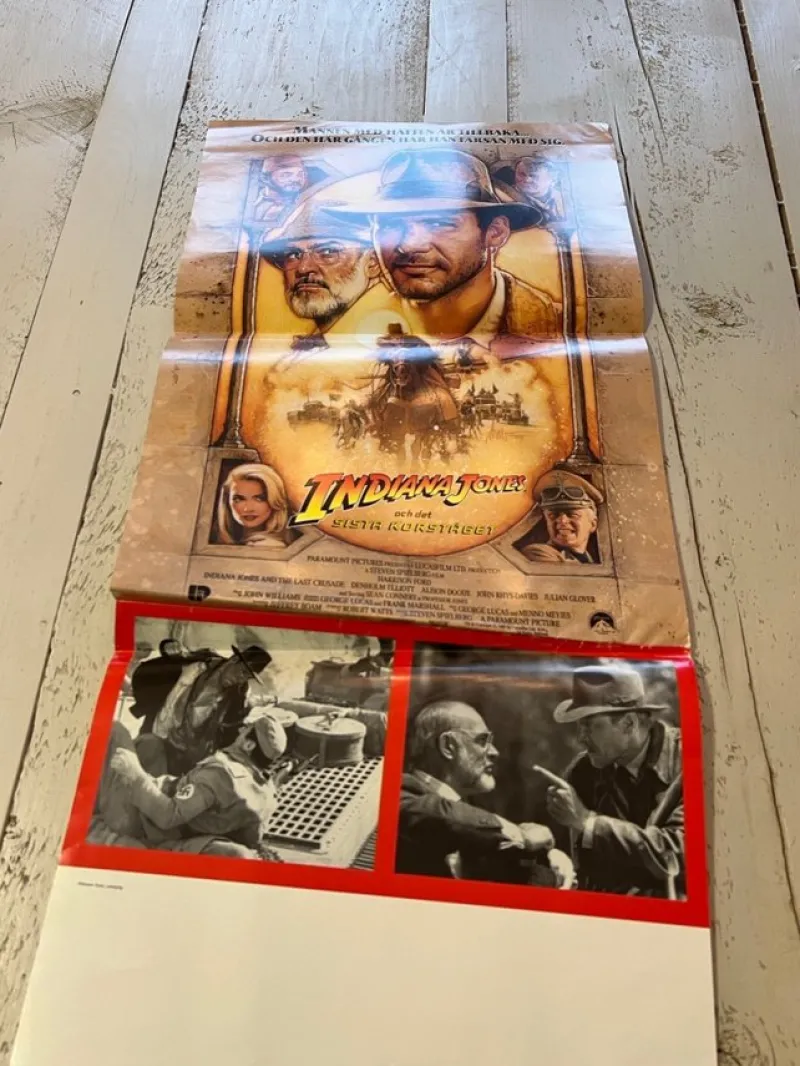 Affisch från filmen Indiana Jones och det sista korståget. Visar huvudpersonerna och scener från filmen.