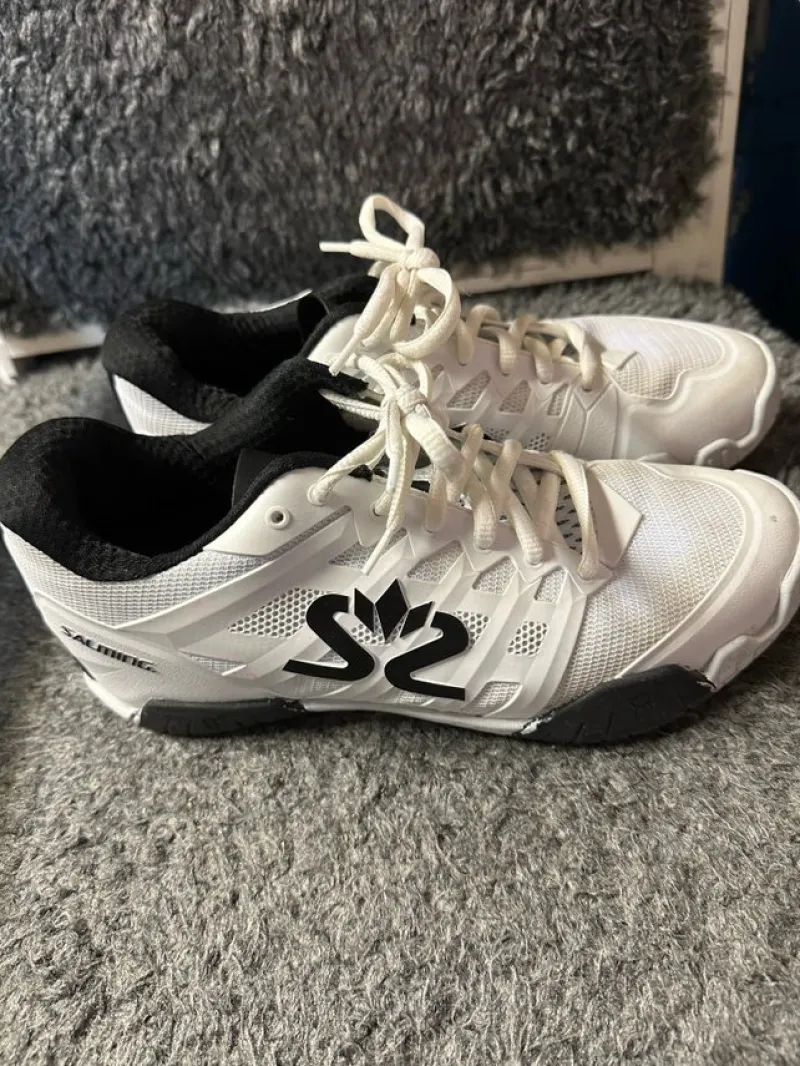 Salming innebandy skor i vit färg. Skorna är i bra skick och har använts sparsamt.