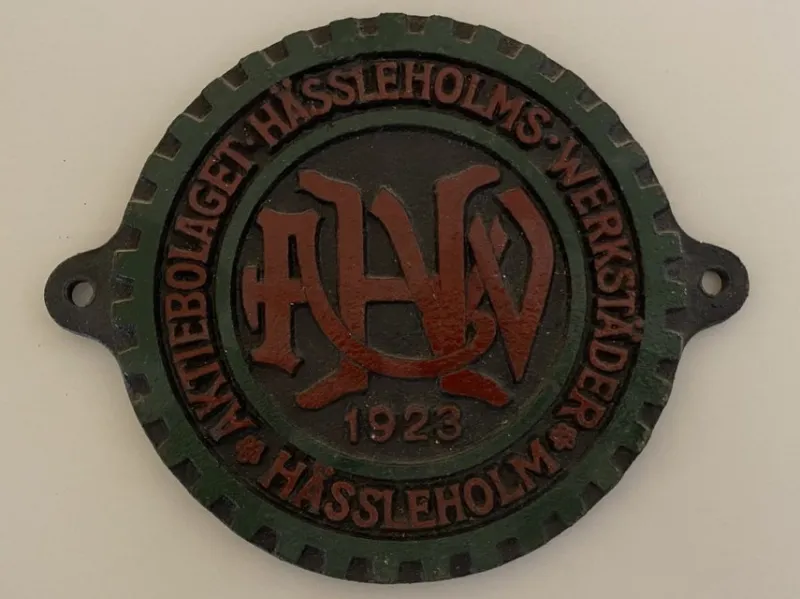 Skylt i gjutjärn från AHW – Aktiebolaget Hässleholms Werkstäder, från 1923