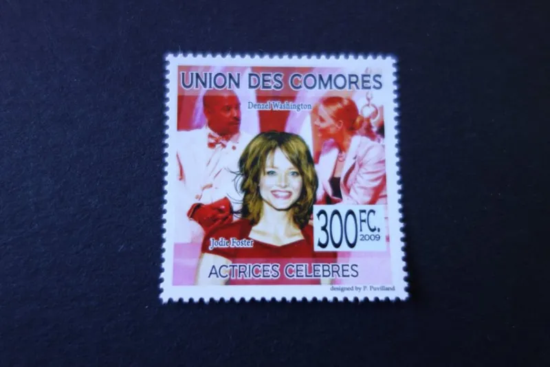 Jodie Foster / Denzel Washington. Postfriskt frimärke från Union Des Comores.