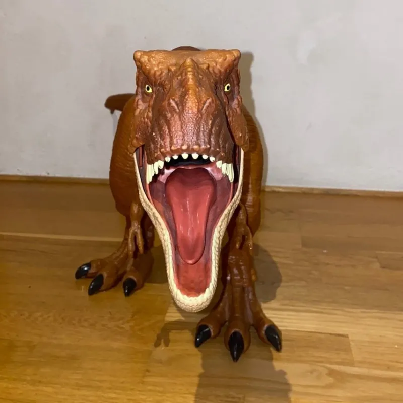 Superstor Tyrannosaurus Rex från Jurassic World i fint skick. En T-Rex dinosauriefigur som kan äta upp mindre dinosaurier (eller andra leksaker)! T-rex sväljer och de mindre dinosaurierna kan sedan plockas ut ur magen.