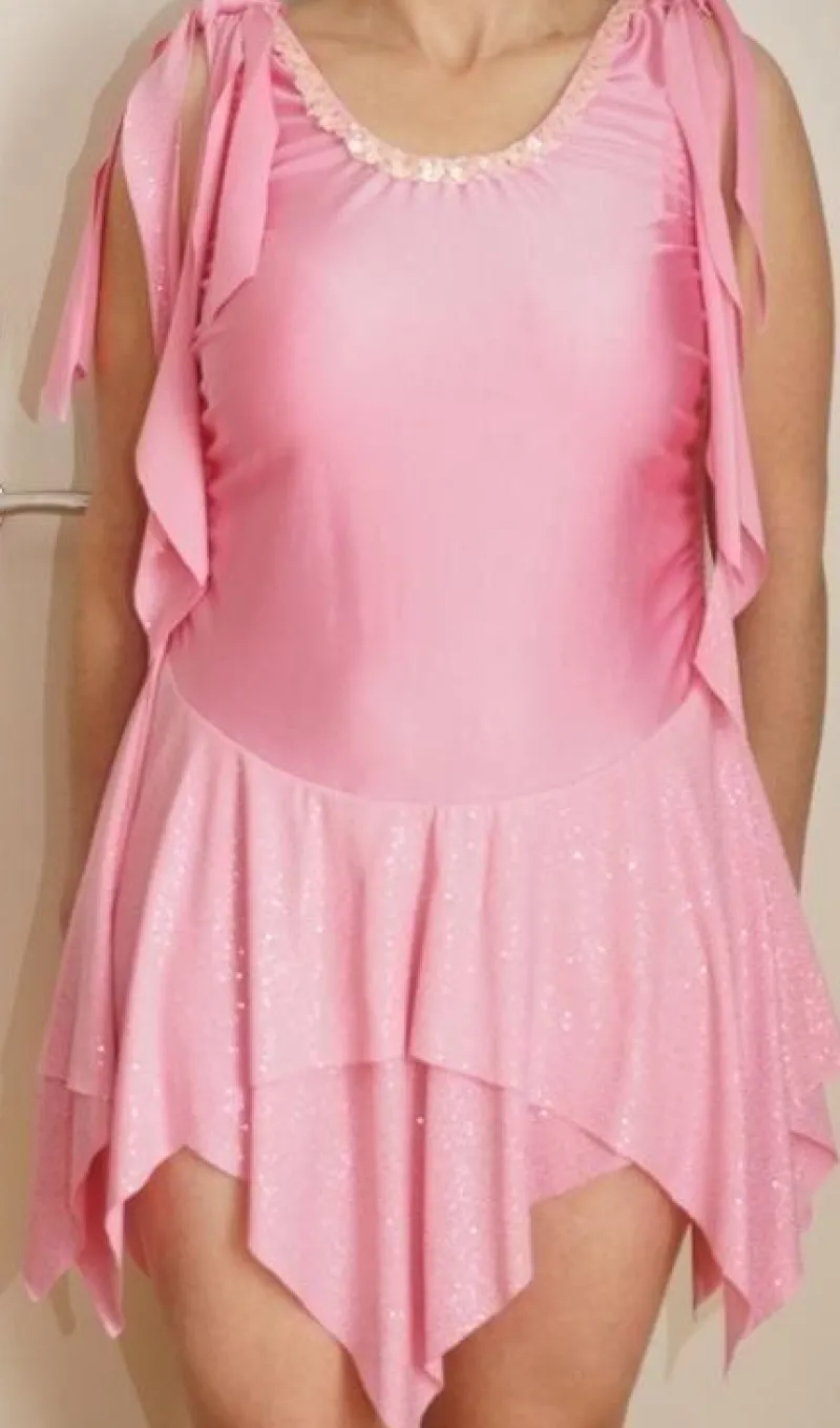 Konståkningsdräkt med paljetter, stl XS/S. Färgen är babyrosa, bild 4 stämmer bäst med färgen.