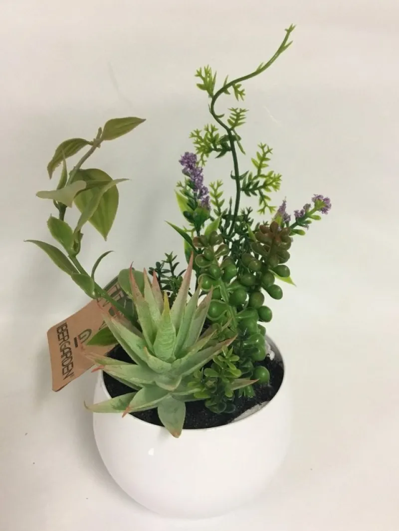 Konstgjord växt i vit plastkruka