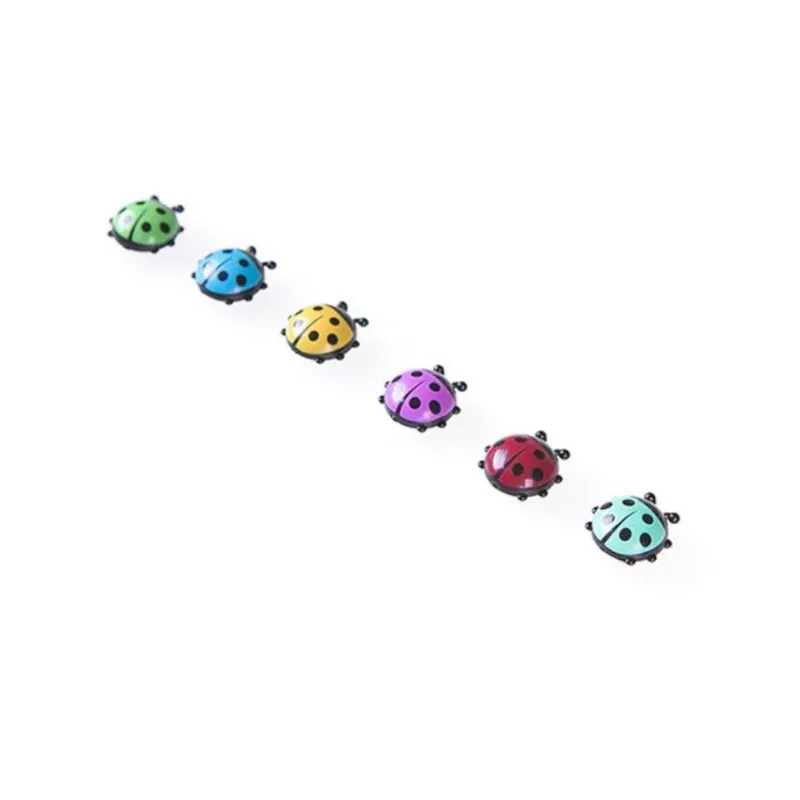 En liten kylskåpsmagnet som ser ut som en nyckelpiga.