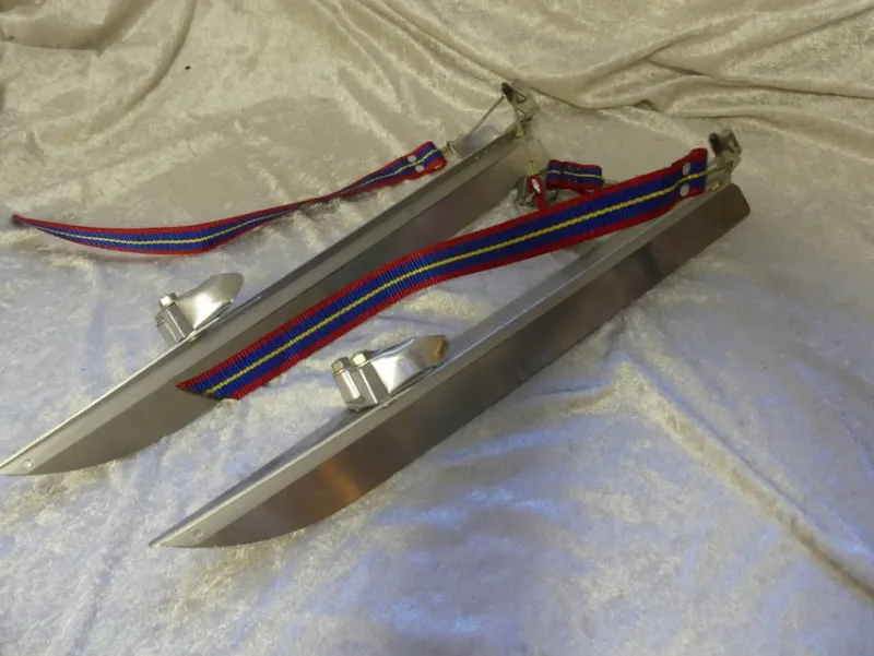 Par skridskor från H. Almgren AB i Täby, Sverige. Skridskorna är tillverkade i metall med justerbara remmar.