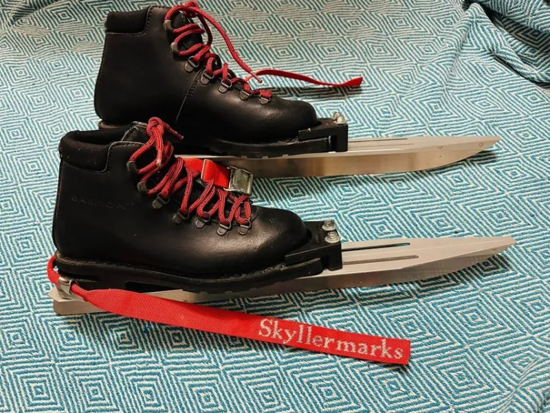 Långfärdsskridskor från Skyllermarks samt turpjäxor från Garmont i stl 38. Skick som nytt!