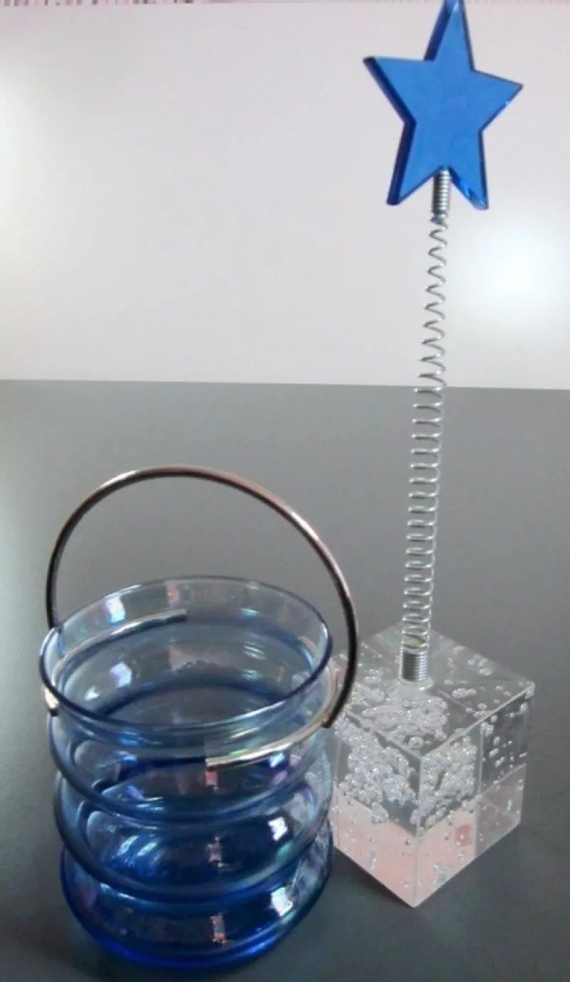 Ljushållare i glas/metall och prydnads stjärna på fjädern och hållaren i resin.