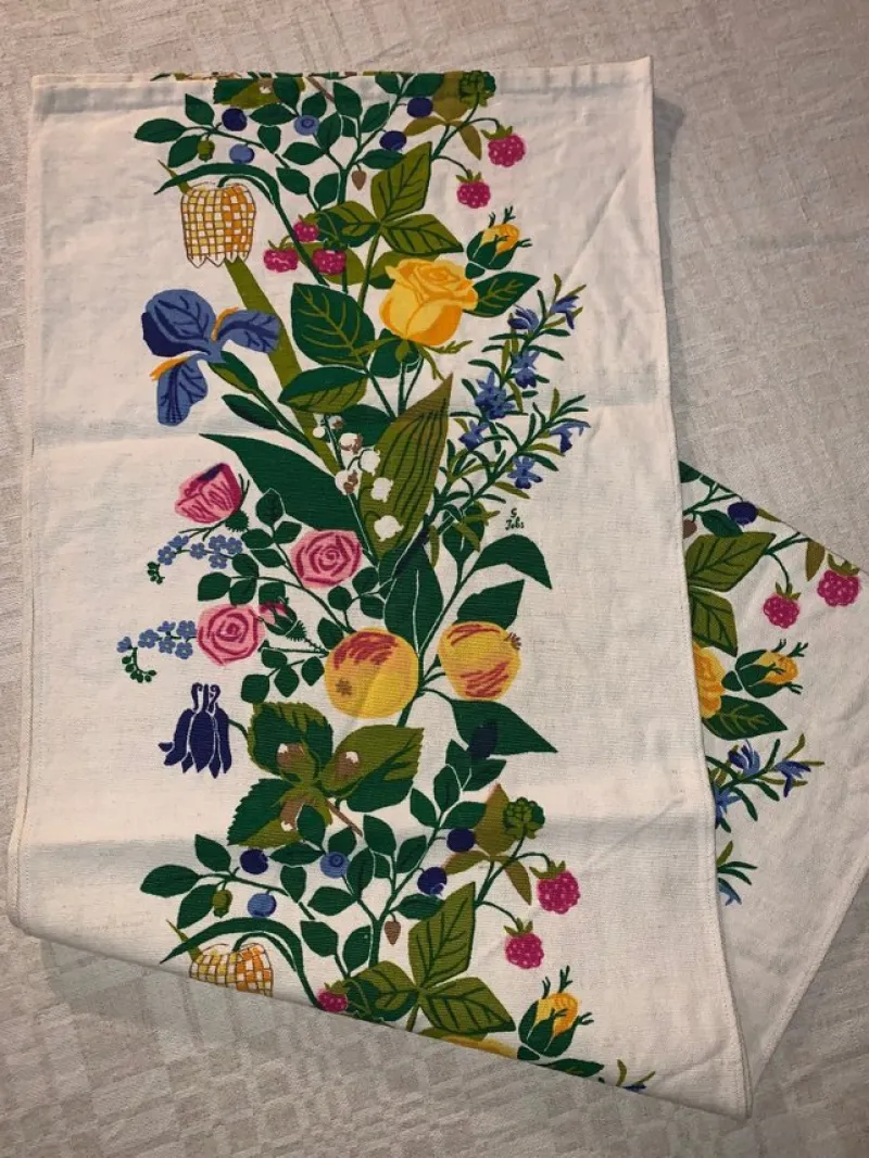 Löpare i Gocken Jobs tryck ’Rosmarin’. Signerad. Jättefint skick! Mått: ca 158 x 32 cm