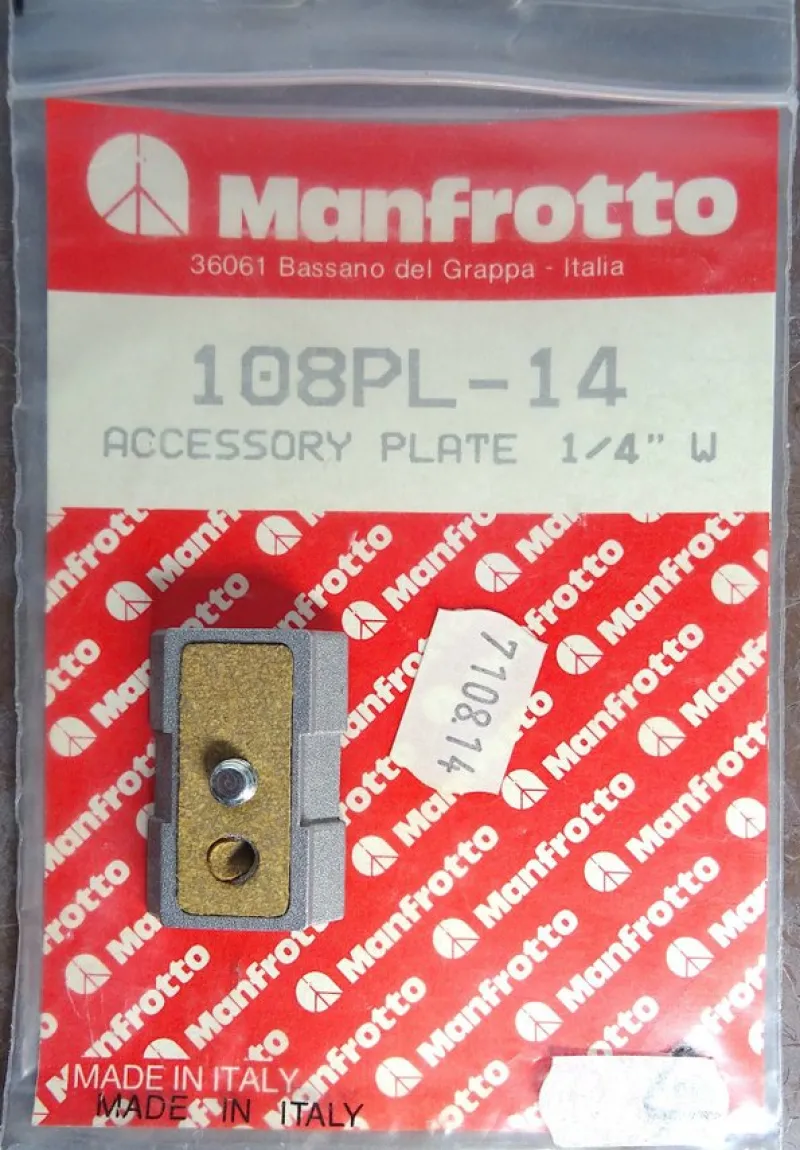 Manfrotto 108PL-14 tillbehörsplatta. 1/4" gänga. HELT NY.
