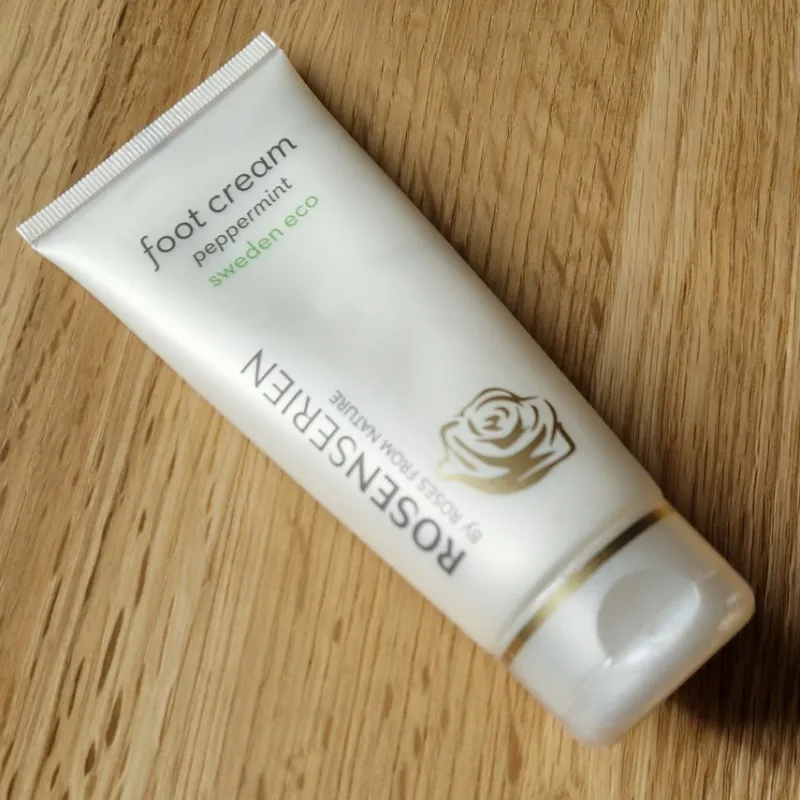 Rosenserien fotkräm med pepparmynta, 100 ml. Ekologisk fuktgivande fotkräm med uppmjukande effekt på förhårdnader och självsprickor.