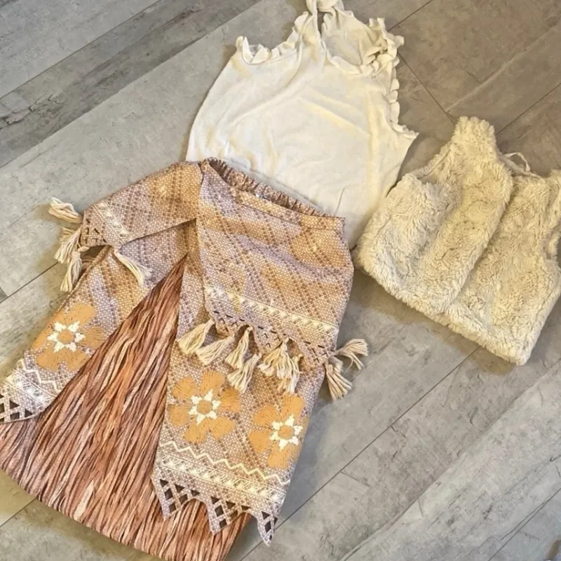 Tradera Moana-kjol med fransar Disney Store + top och väst> Maskeradkläder