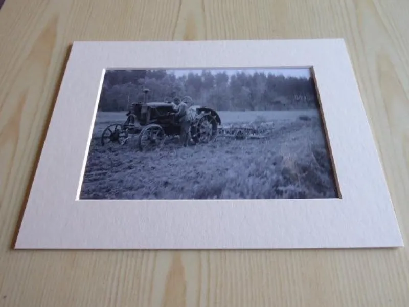 Gammalt traktor, nytryckt fotografi. Passepartout storlek cirka 15 cm x 20 cm.