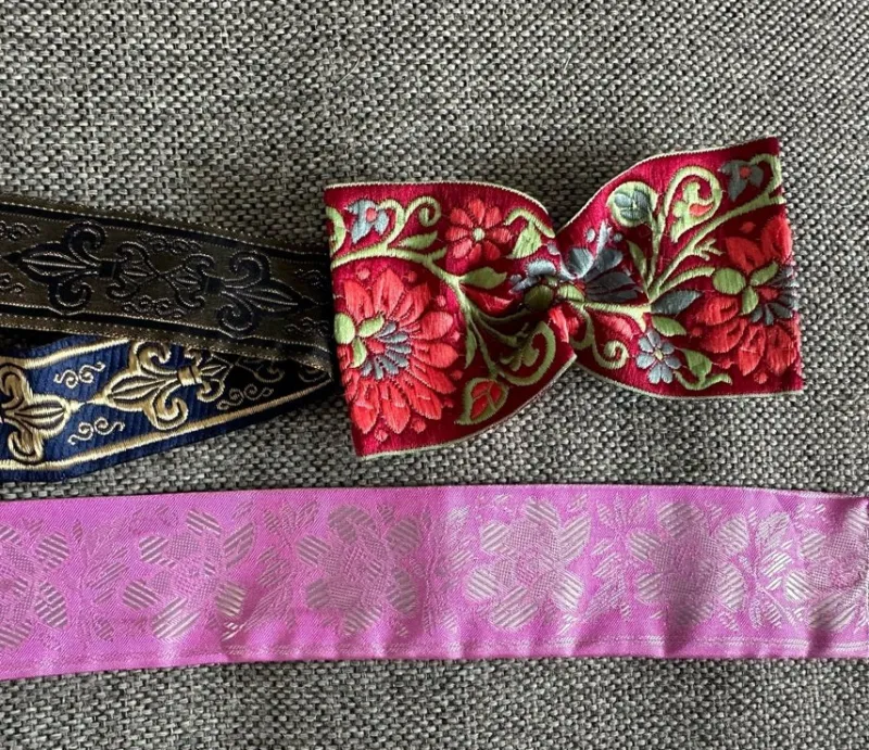 Dekorationer till mössa, två band och en rosett.