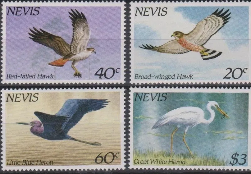 Tradera Nevis 1985 Fåglar 4v^ Sydamerika & Karibien