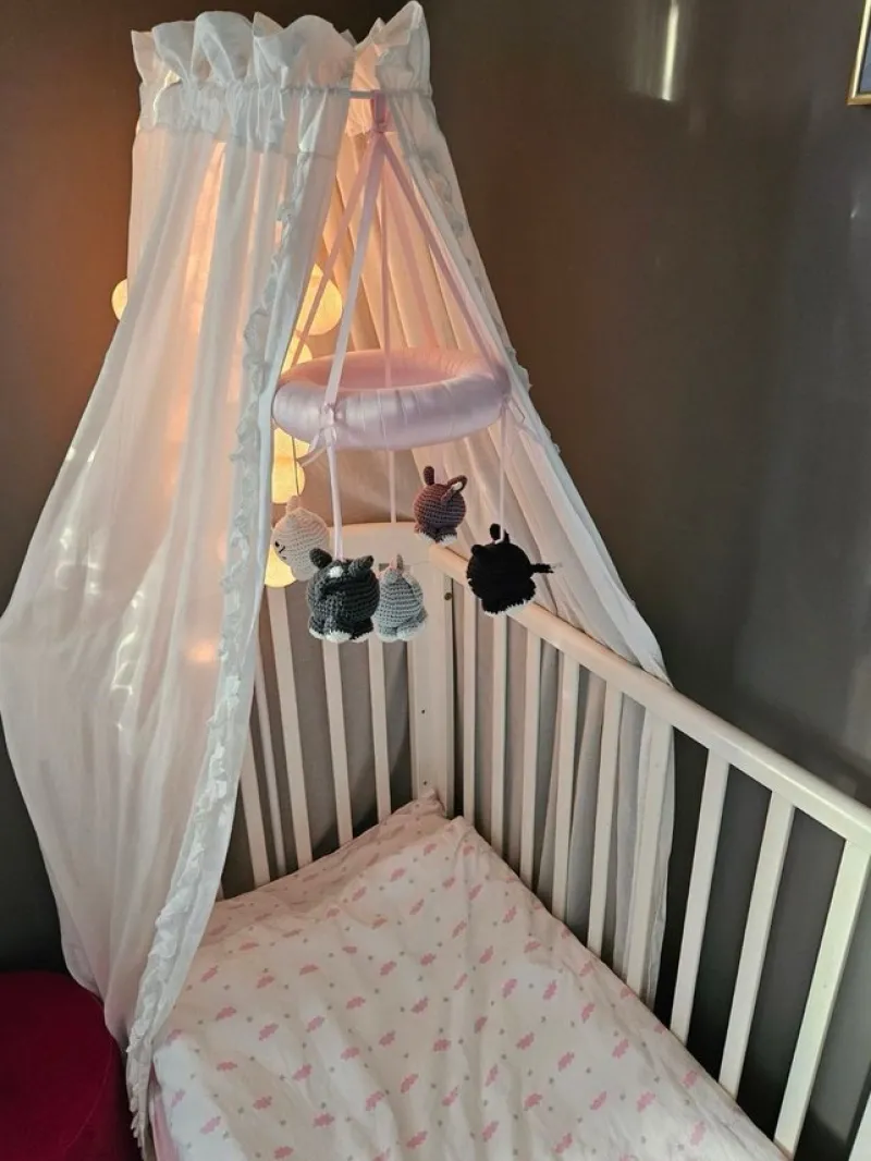 Sänghimmel i skir, tunn bomull med spetsvolang, från NG Baby.