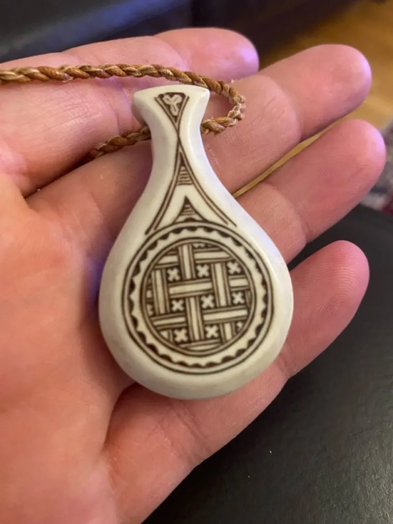 Tradera NICKOLAUS FANKKI. Hängsmycke, renhorn, sameslöjd ,signerat.> Hemslöjd