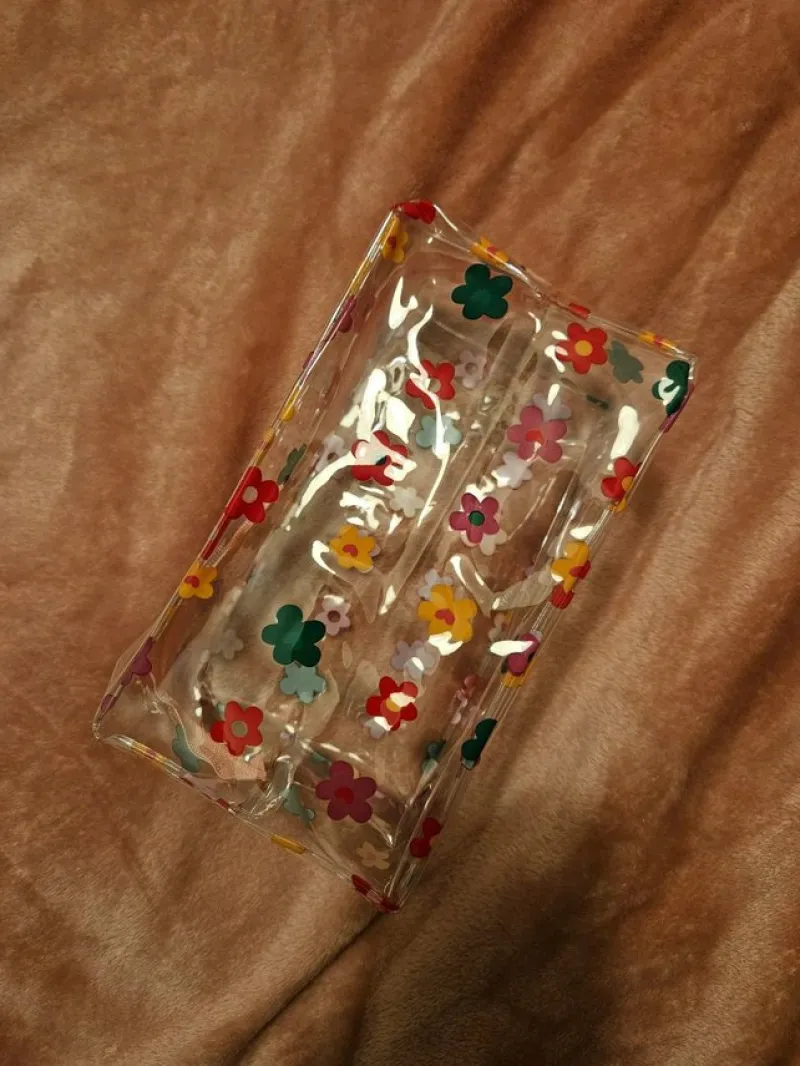 Tradera Ny Transparent sminkväska med blommor> Väskor