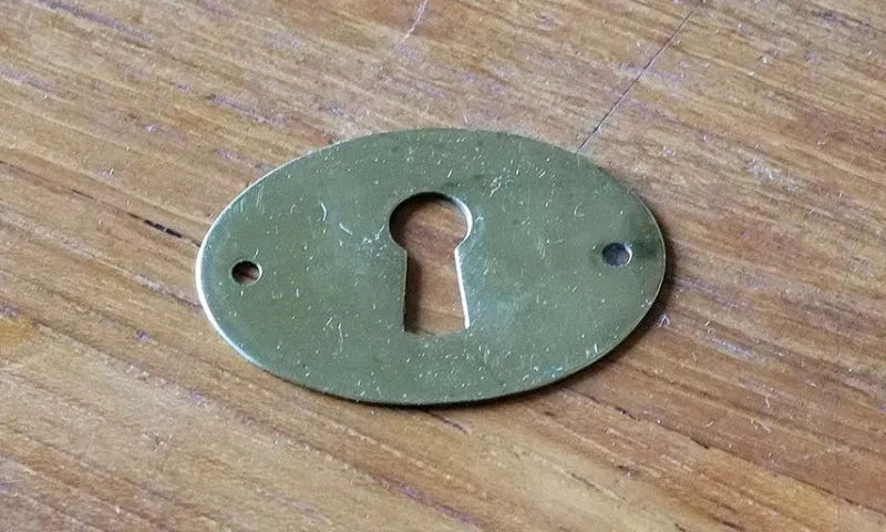 1950-60 tal oanvända, lackerad mässing, 30×43 mm. Avstånd mellan hål: 32 mm. Skruv ingår inte. Lite fläckar finns.