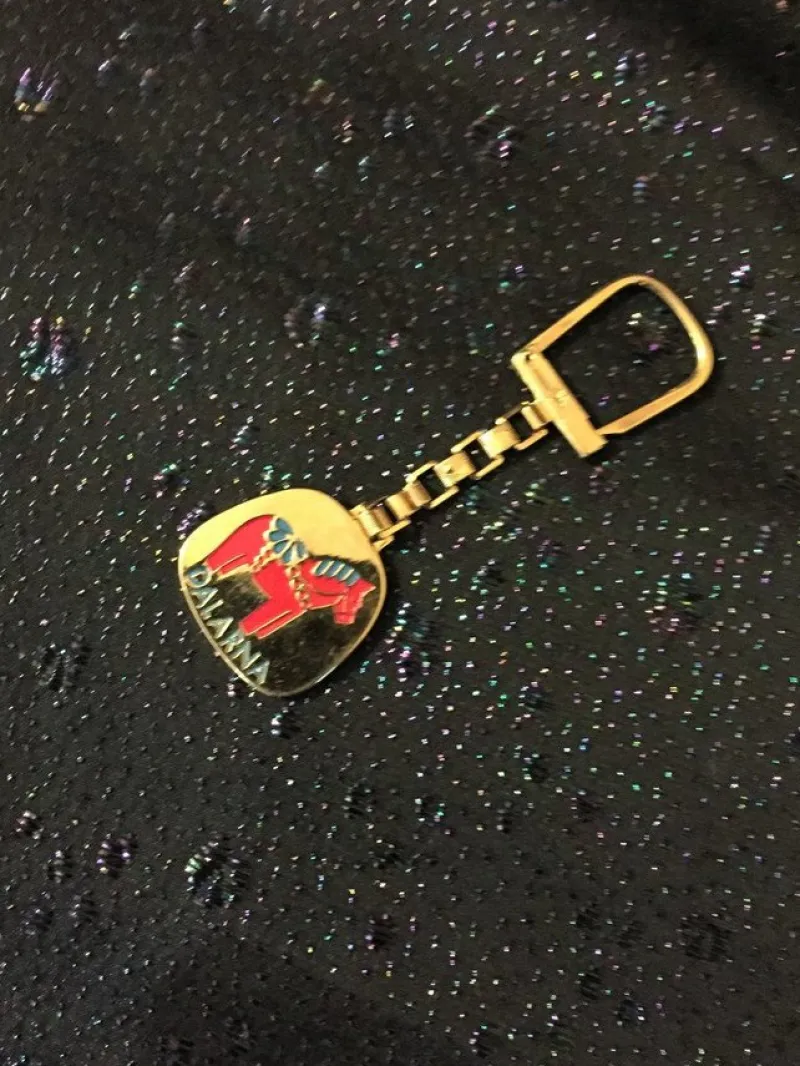 Nyckelring i förgylld metall. Dalahäst.Dalarna.