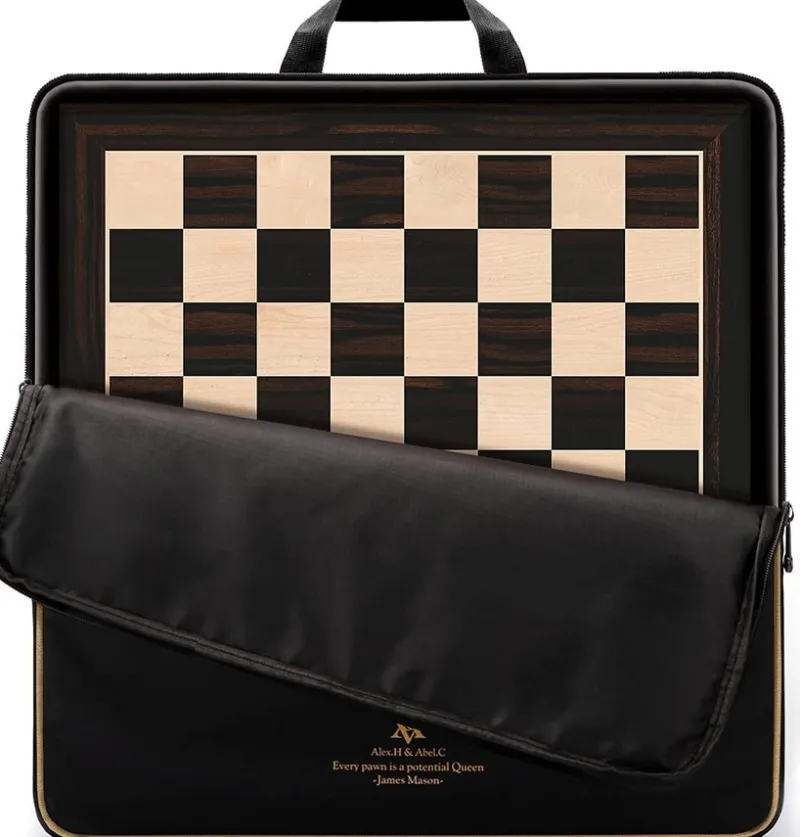 Brädans yta antar utsökt fanerhantverk, schackrutornas placering är exakt; det finns 4 halkskyddade filtkuddar på botten för att säkerställa jämnheten under användning och även förhindra att skivan orsakar slitage på bordet.