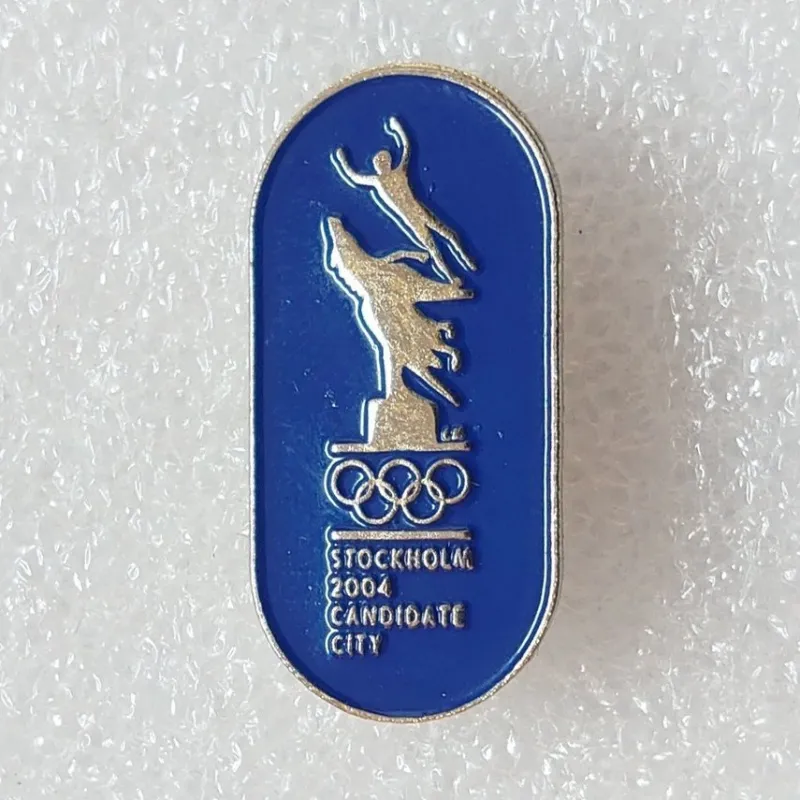 Metallmärke för OS-ansökan Stockholm 2004 – blå bakgrund