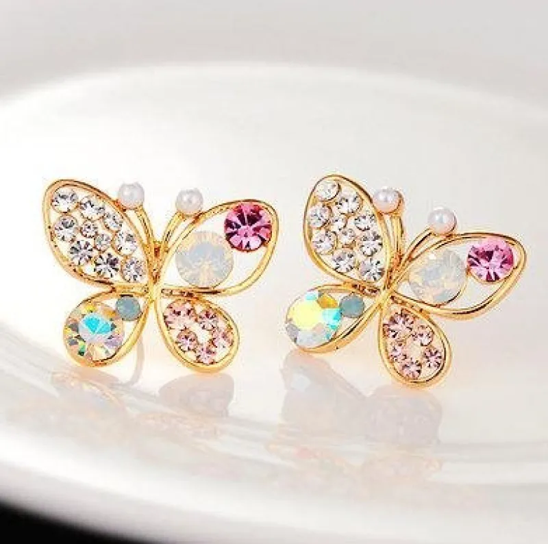 Fantastiskt fina stud örhängen i form av fjärilar med rhinestones i olika färger.